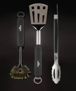 Every grill master needs a sturdy spatula, tough tongs, and a good grill brush. This Napoleon 3 Piece Stainless Steel Multi-Tool Set has it all. All tools are made from durable stainless steel because barbecue tools take a beating and need to be tough. The heat resistant handles are comfortable to hold making flipping burgers and turning steaks a breeze. Don’t get caught without a bottle opener, every end of this tool set is equipped with a bottle opener end that doubles as a tool hanger so that your tools are always in reach. The 3-sided grill brush has brass bristles, which are ideal for our porcelain coated cast iron cooking grids. When it comes to cleanup, it’s a breeze because they’re dishwasher safe. Be prepared for whatever you want to grill up with this Napoleon 3 Piece Stainless Steel Multi-Tool Set.