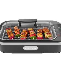 Grill all year long no matter the weather with the Chefman Smokeless Indoor Grill. Large grill surface cooks your BBQ favorites with virtually no smoke. Included removable integrated cooking probe lets you cook foods to the perfect temperature. Presets for chicken, fish, and meat, plus doneness options, ensures you will never overcook or undercook again.
