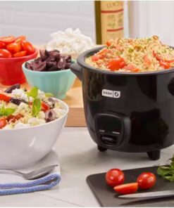 - Includes: Dash mini rice cooker, rice paddle, measuring cup, removable pot, and recipe guide