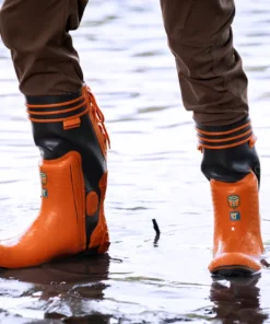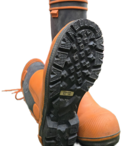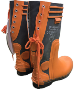 Work-ready Husqvarna logging boots that offer chainsaw resistance, waterproof protection, oil-resistant soles, and steel toes for optimal safety. Made of high-quality natural rubber, the boots feature cotton pile linings and 4-layer insoles, along with heel grips and ankle guards. Optional liners and caulks available. These protective boots comply with the basic demands in the EU-directive 89/686/EEC and are manufactured in accordance with the European Standards EN ISO 17249 / EN ISO 20345 / EN 345 / EN 347. Rated for: Impact resistance 200 joule, Heel damping 20 joule. Saw protection class 3 – 28m/s chain speed
