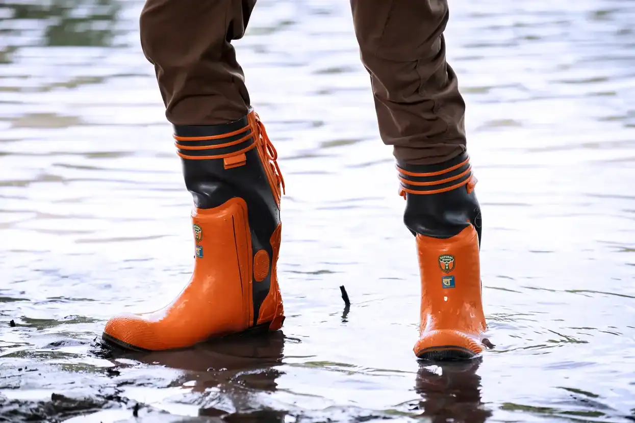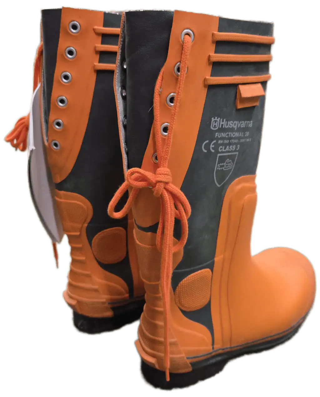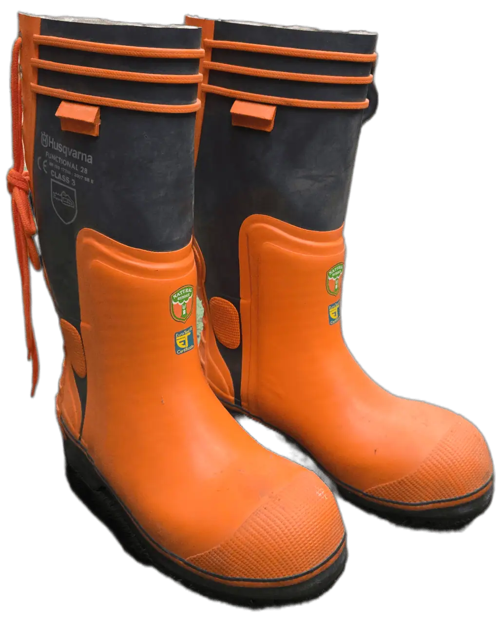 Work-ready Husqvarna logging boots that offer chainsaw resistance, waterproof protection, oil-resistant soles, and steel toes for optimal safety. Made of high-quality natural rubber, the boots feature cotton pile linings and 4-layer insoles, along with heel grips and ankle guards. Optional liners and caulks available. These protective boots comply with the basic demands in the EU-directive 89/686/EEC and are manufactured in accordance with the European Standards EN ISO 17249 / EN ISO 20345 / EN 345 / EN 347. Rated for: Impact resistance 200 joule, Heel damping 20 joule. Saw protection class 3 – 28m/s chain speed