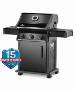 Napoleon’s Rogue® 425 Propane Gas Grill in black, is a premium quality gas grill with an affordable price. Three burners light every time with a battery-free ignition. This grill boasts precise temperature control, high heat searing over cast iron cooking grids and stainless steel sear plates for even heating and to keep your grill clean. The stylish black exterior is highly durable and easy to clean.