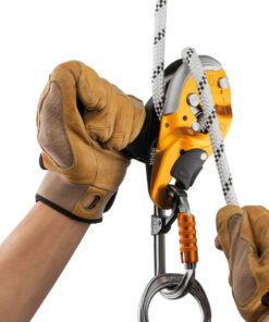 – The AUTO-LOCK system allows users to easily position themselves at a workstation without having to manipulate the handle or tie off the device: as soon as the user releases the handle, the rope is automatically blocked in the device; the automatic return system on the handle limits the risk of the device getting accidentally snagged